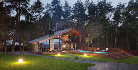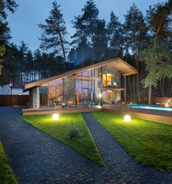 Коттедж похож на маленький дом отдыха. Внешне коттедж имеет эффектное оформление в стиле строгой Канады с контрастной отделкой