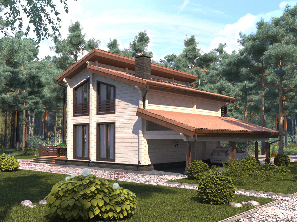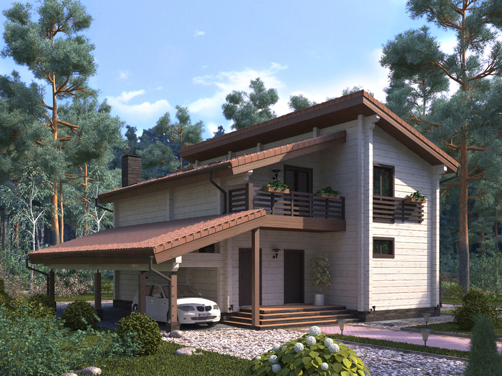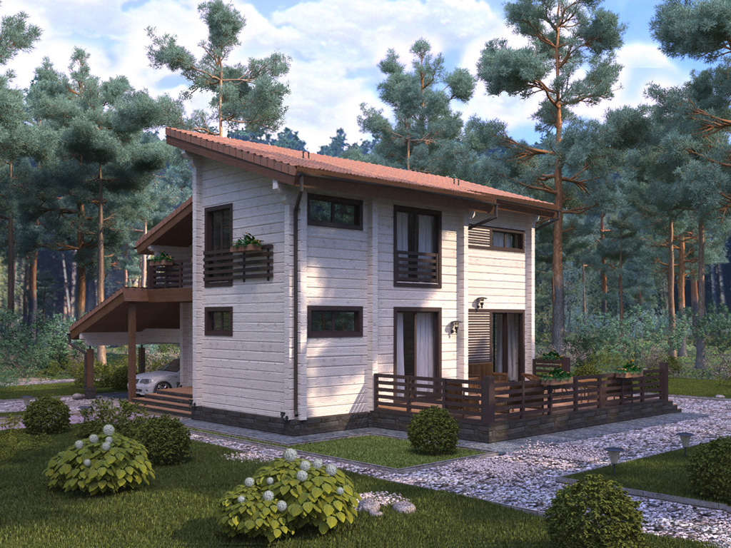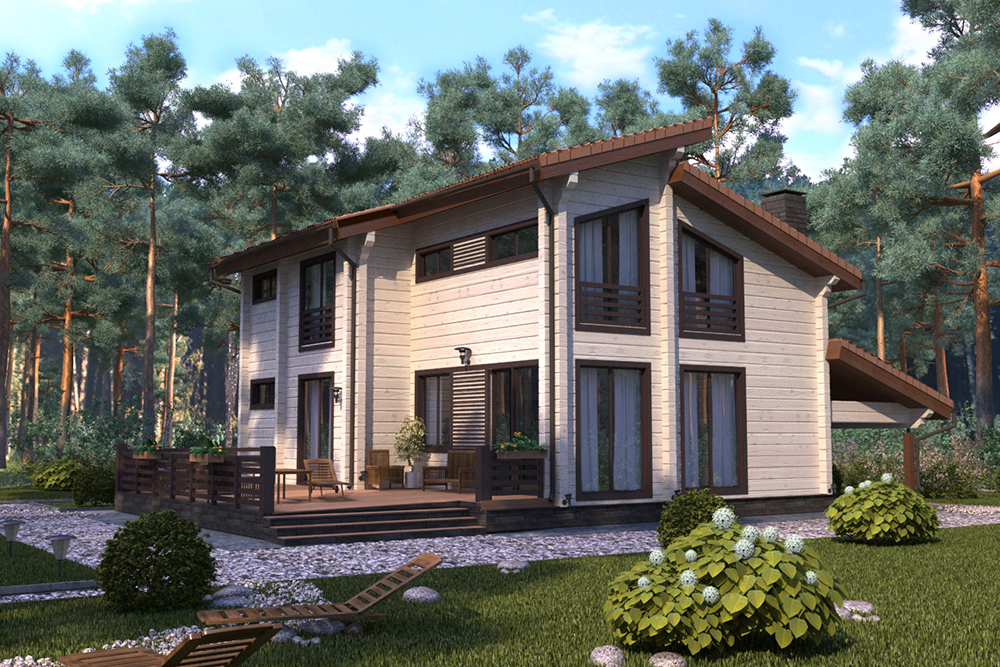 Деревянный дом из профилированного бруса в минималистичном стиле