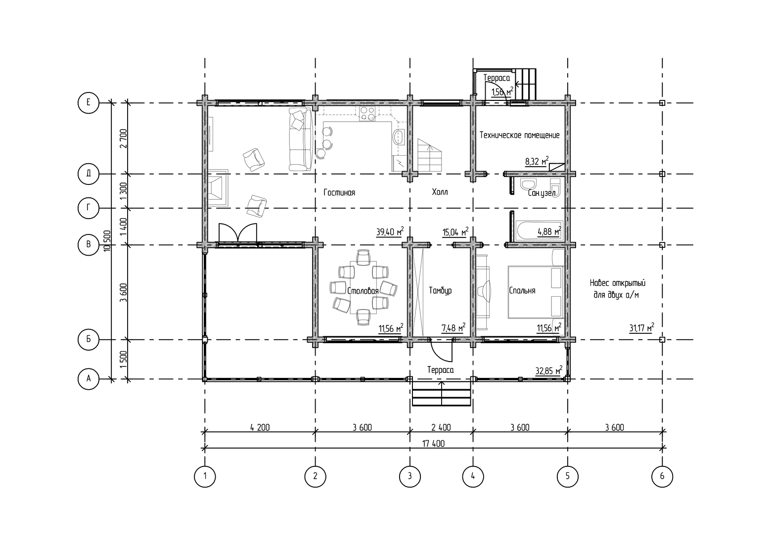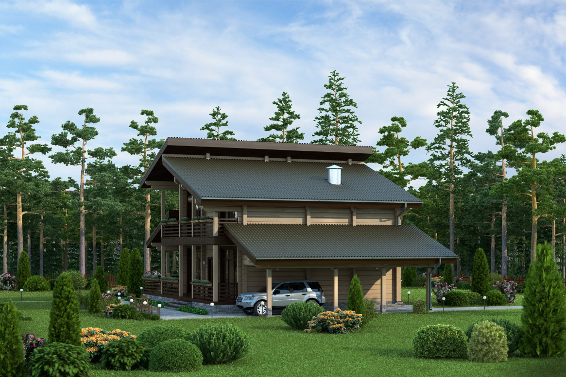 Компактная, симпатичная баня с зоной отдыха, способная органично вписаться в любой ландшафт и рельеф участка. Теплый контур — 43 кв.м. Терраса — 10 кв.м