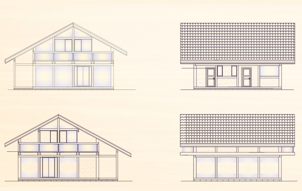 Вместительный дом (фахверк с бассейном), для постоянного проживания большой семьи. На первом этаже находится большой бассейн, тренажерный зал, хозблок, гостиная, кабинет, кинотеатр и каминная.