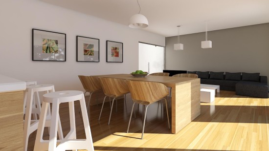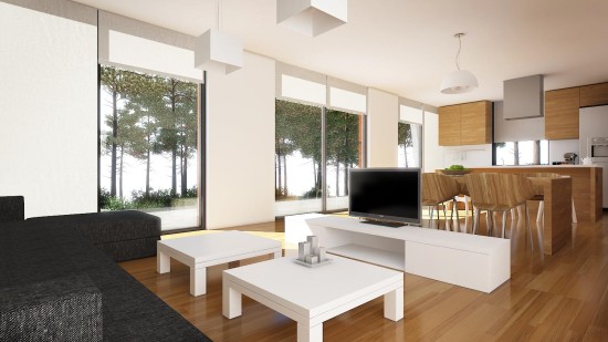 Наличие конструктивных элементов, выполненных из дерева, помогут создать современный образ